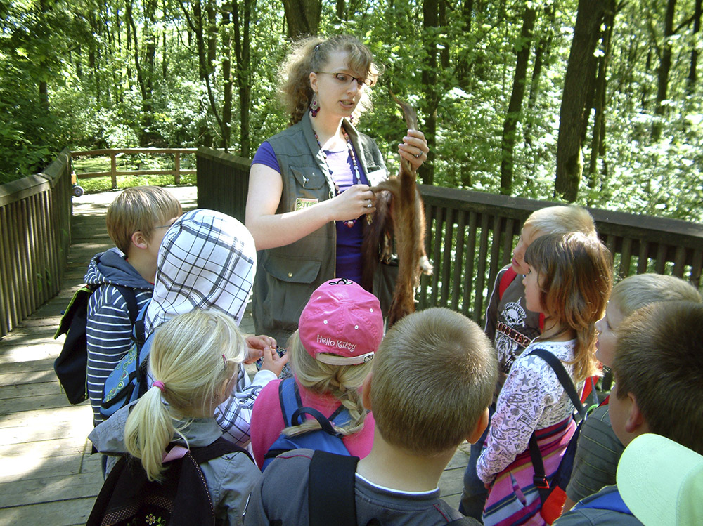 Mit Hilfe eines Spurenbüchleins bestimmen die Kinder unterschiedliche Fährten von Waldtieren und erkennen, wie wichtig die Artenvielfalt für den Wald…